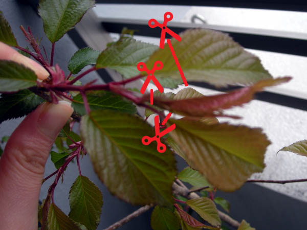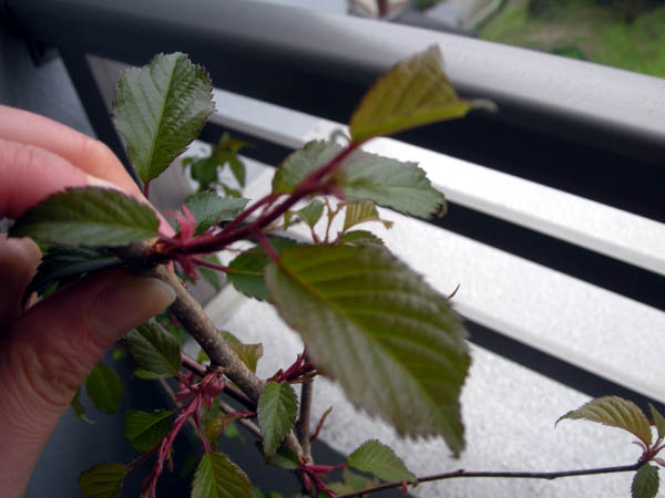 ◆富士枝垂桜:2009年の花後に剪定した枝。そのときは芽があった。 ◆啓翁桜:2009年の花後に剪定した枝。2008年から動かない芽があった。 ◆染井吉野:2009年秋の植替え時には元気だった枝。 ◆御殿場桜:2009年の花後に剪定した枝。そのときは芽があった。 ◆緑桜:2009年春に花が咲いた枝。そのとき葉芽がなかった。 「桜は枯れ枝が出やすい」 と聞いていたから今まであまり気にしていなかったけど ちょっと調べたら気をつけるベき事が書いてあったのでメモ。 >鉢の土が湿っていると安心しがちだが、枝の乾燥にも気をつけたい。 >枝が細い場合、乾燥するとそのまま枝枯れを起こす場合があるので >風が吹いて乾燥する場所なら、枝や蕾に霧吹きで加湿してやるとよい。 うわー。 そうなのかぁ。 霧吹きなんて今まで全然やっていなかったよ。 えーと、でも、 花を濡らすのは、やめた方がいいんだよね? 痛むから。 花びらが出る前の蕾だったらいいということかなぁ? これからは蕾の桜には霧吹きしよう。 シュッシュッ ððð |