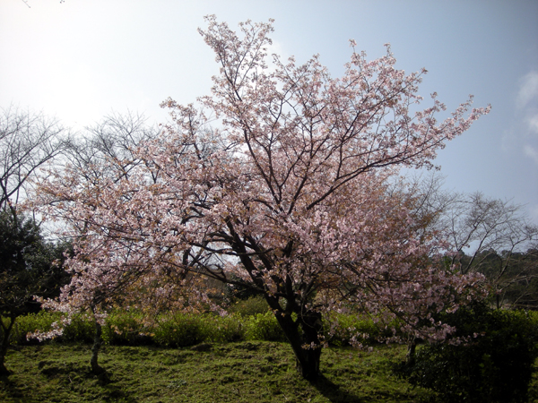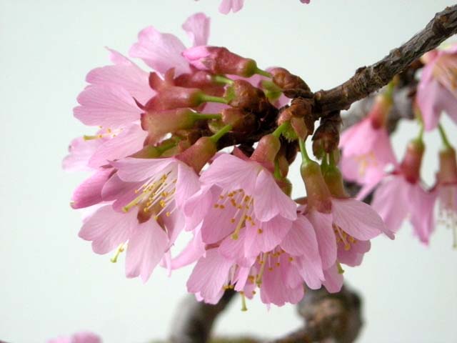 オカメ桜の蕾は全部花開いて、かといって散る花はまだ1つもなく